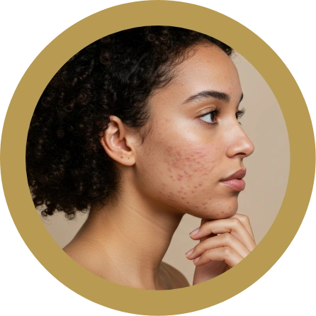 You might see tiny dips, craters, or pitted areas; especially on your cheeks, temples, or forehead. They don’t heal like regular acne and make your skin appear uneven or “textured” under certain light.